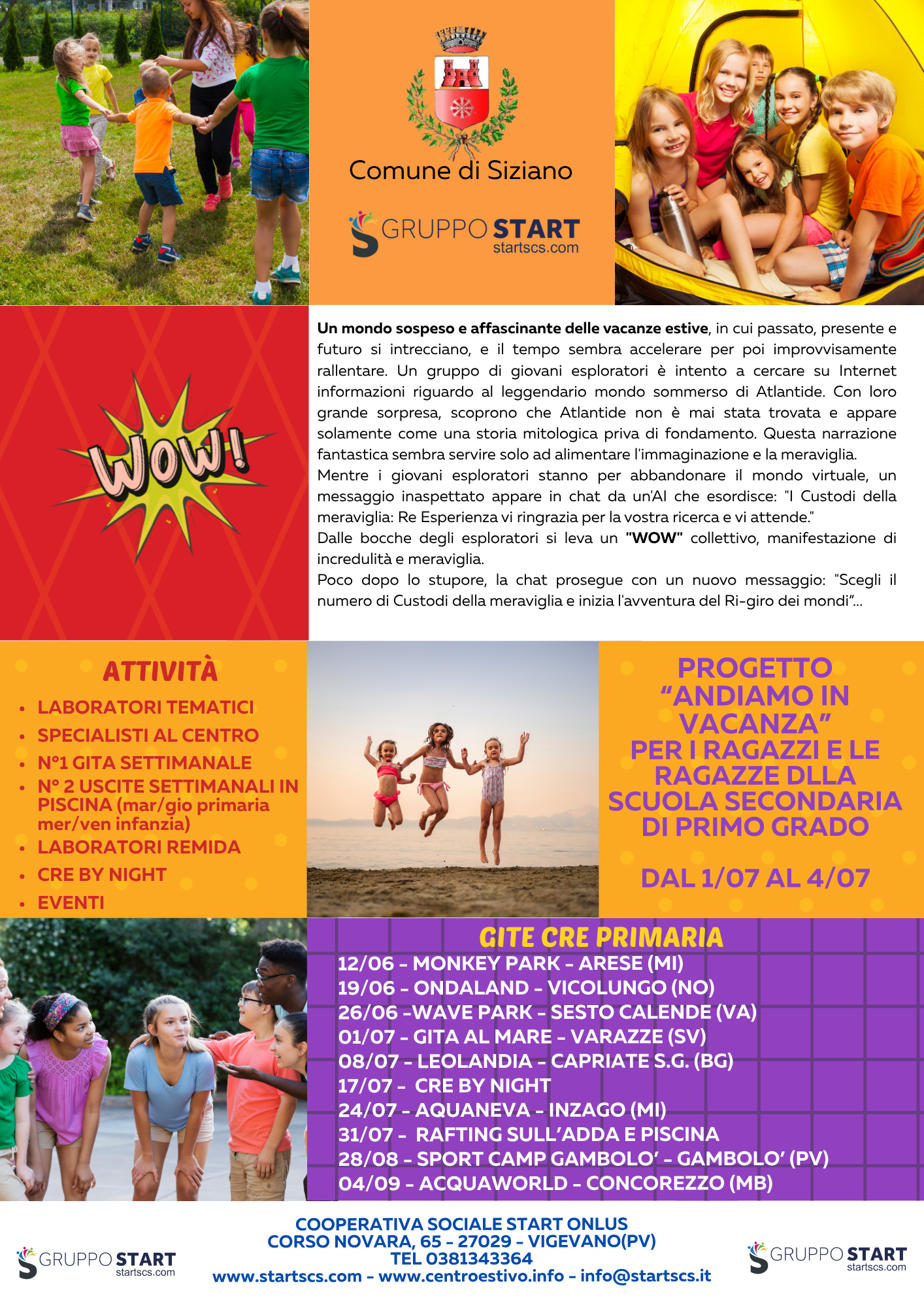 L'incontro di presentazione dell'offerta per l'estate 2026 è fissato per giovedì 14 maggio 2026 alle ore 18.00 presso l'atrio della Scuola Primaria di Siziano (Via Pavia 58).