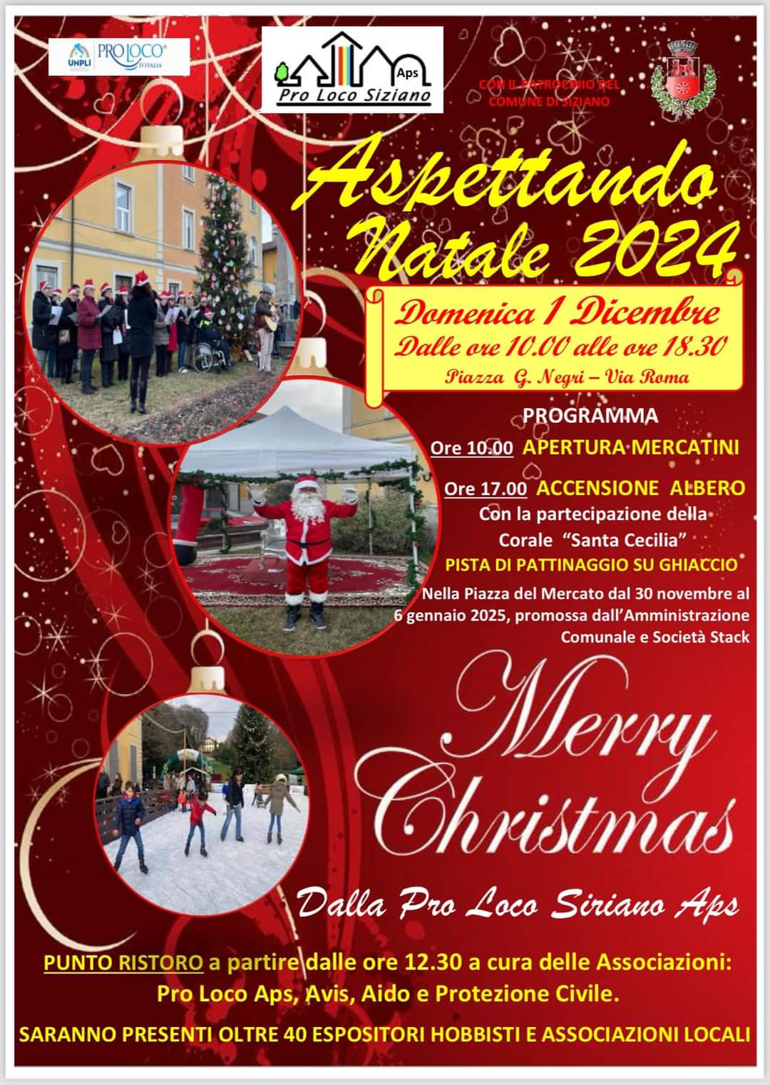 Si informano i cittadini che Domenica 1 dicembre saranno allestiti i tradizionali Mercatini di Natale, a cura della Pro Loco APS di Siziano.