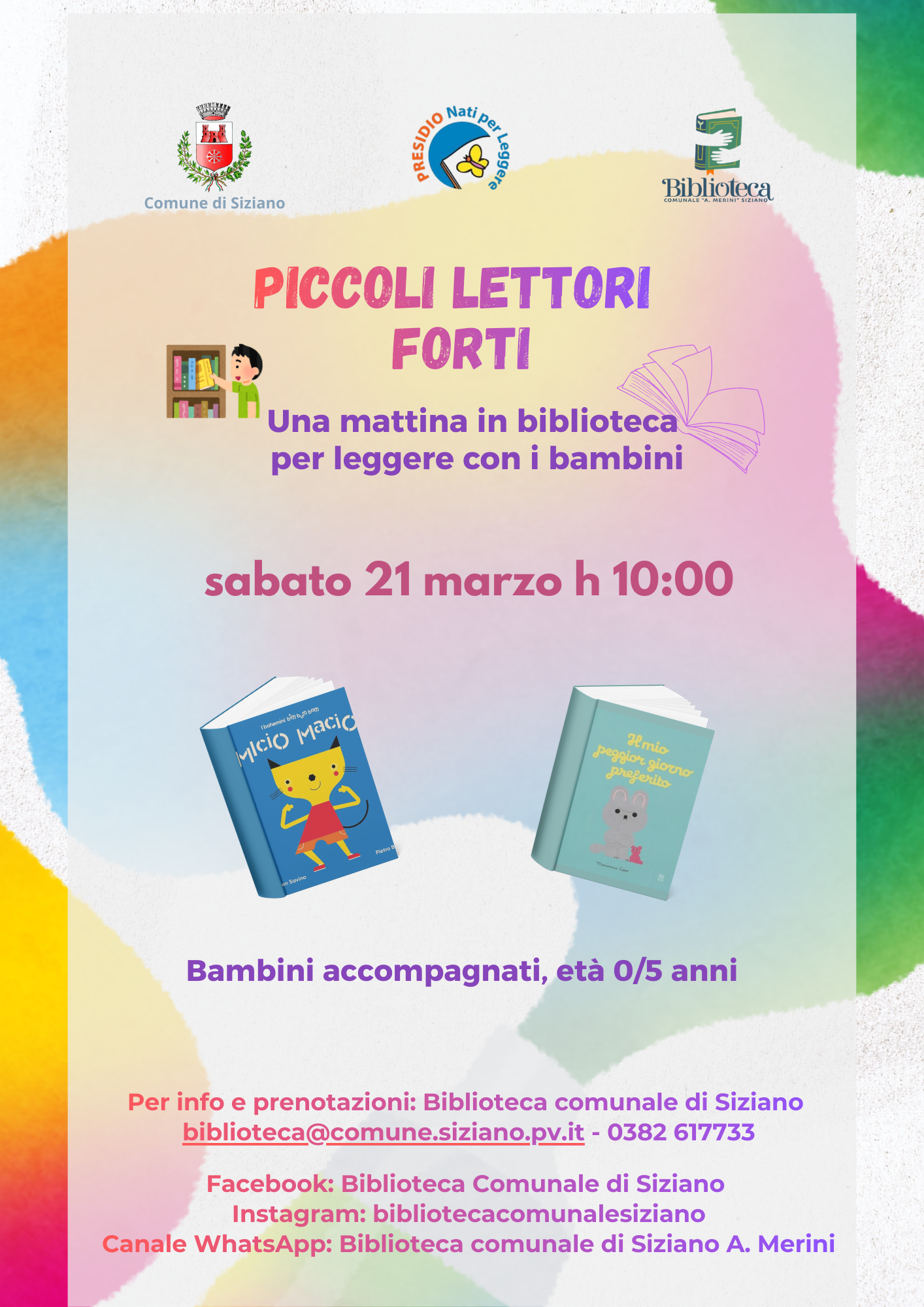 Torna la consueta iniziativa "Piccoli Lettori Forti", una mattina in biblioteca per leggere con i propri bambini.